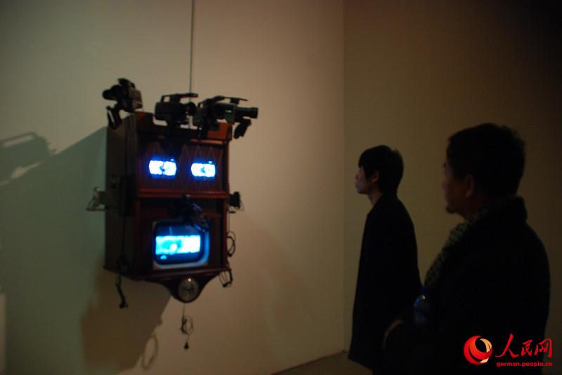 | Die Besucher sind von dem mysteri?sen Holzkasten fasziniert. Es ist ein Kunstwerk des Koreaners Nam June Paik: "die Internetbewohner: jswg.dreizehn.xulf" (1997). Der Fernsehapparat lieferte dem Künstler vielf?ltige M?glichkeiten für Kunstinstallationen. |