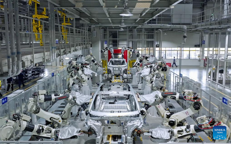 Ein Blick in das digitale und intelligente Werk von China Changan Automobile Group Co., Ltd. in der südwestchinesischen Stadt Chongqing, in dem das Elektroauto AVATR produziert wird. 28. Juli 2025. (Foto: Xinhua/Chen Cheng)